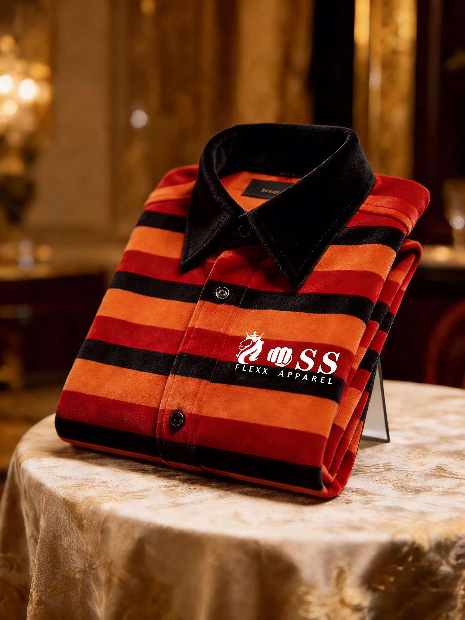 Men's Velvet Business Logo Print Long Sleeve Polo Shirt-0109