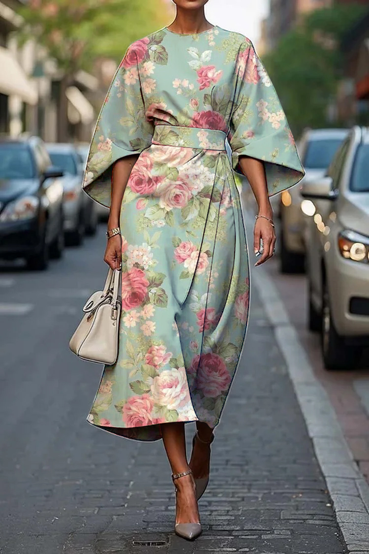 Women's Vintage Elegant Floral Print Midi Dress