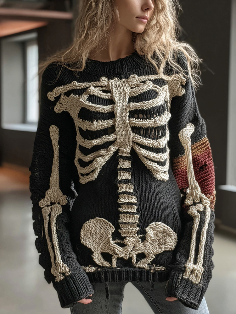Vintage Halloween Human Anatomy Art Sense Thick Needle Round Neck Sweater