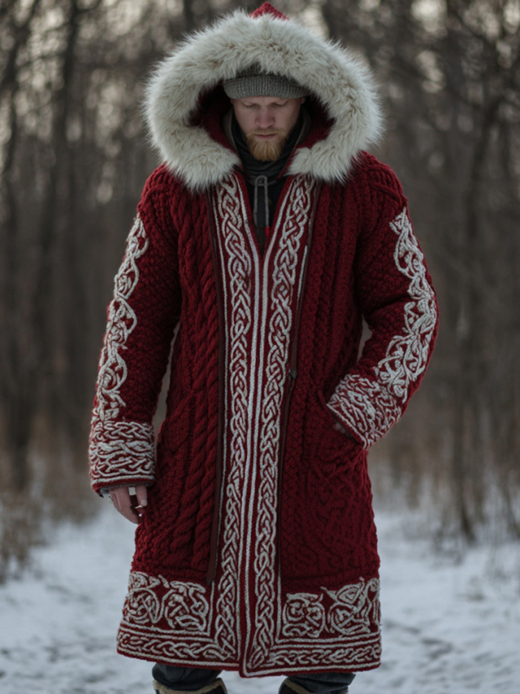 Men's Christmas Santa Celtic Art Warm Hooded Knit Sweater Jacket