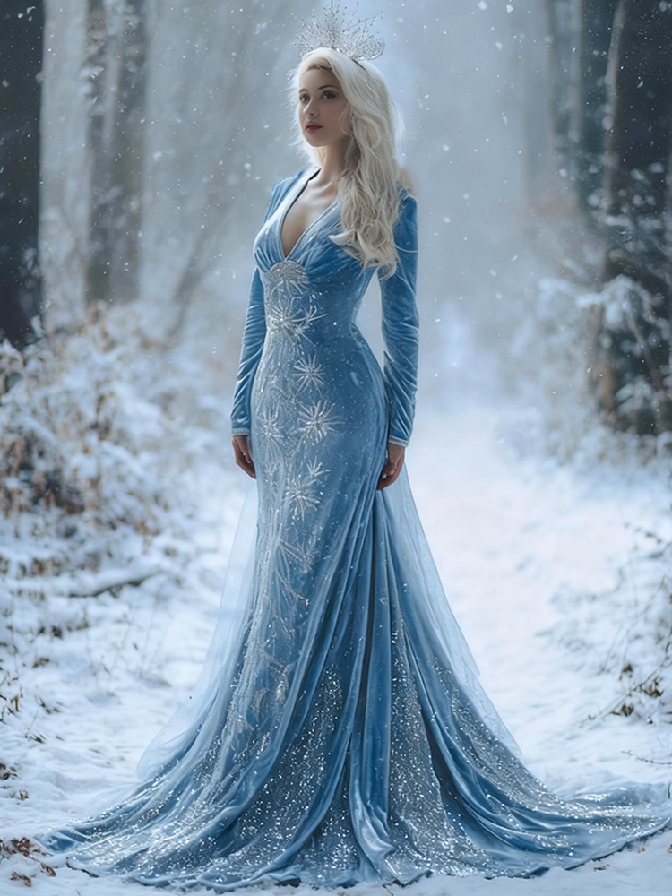 Christmas Snowflakes & Winter Forest Inspired Cozy Velvet Maxi Dress