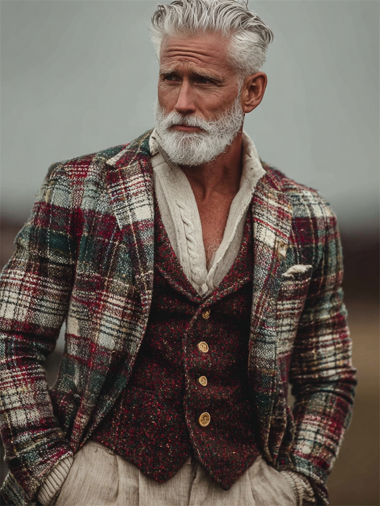 Men's Vintage British Christmas Plaid Cozy Blazer