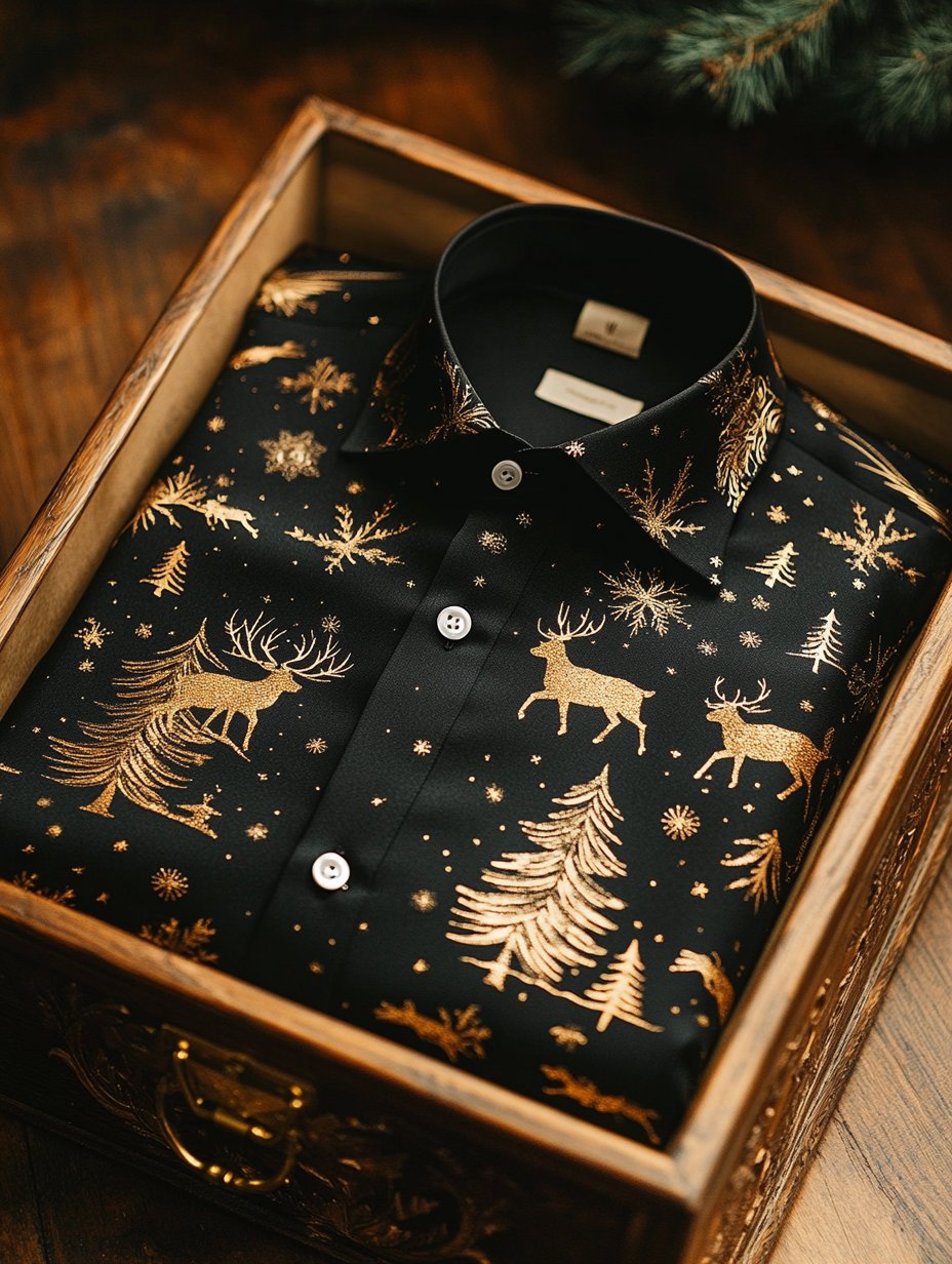 Men's Luxury Christmas Party Long Sleeve Button-Down Shirt
