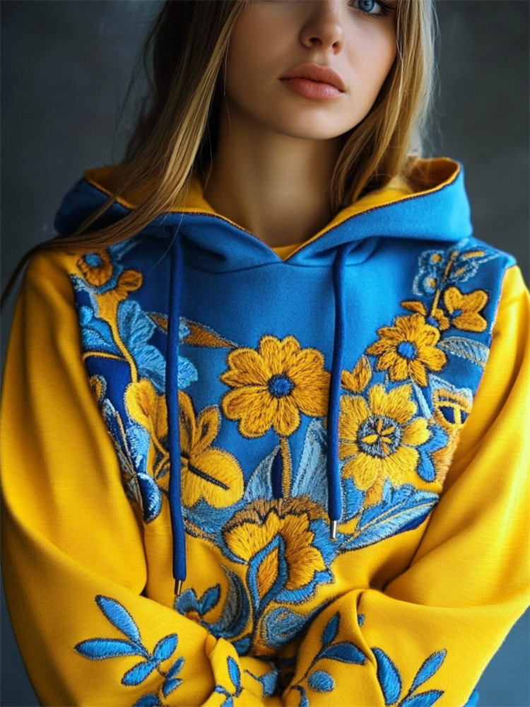 Ukraine Classy Floral Embroidered Contrast Color Hoodie
