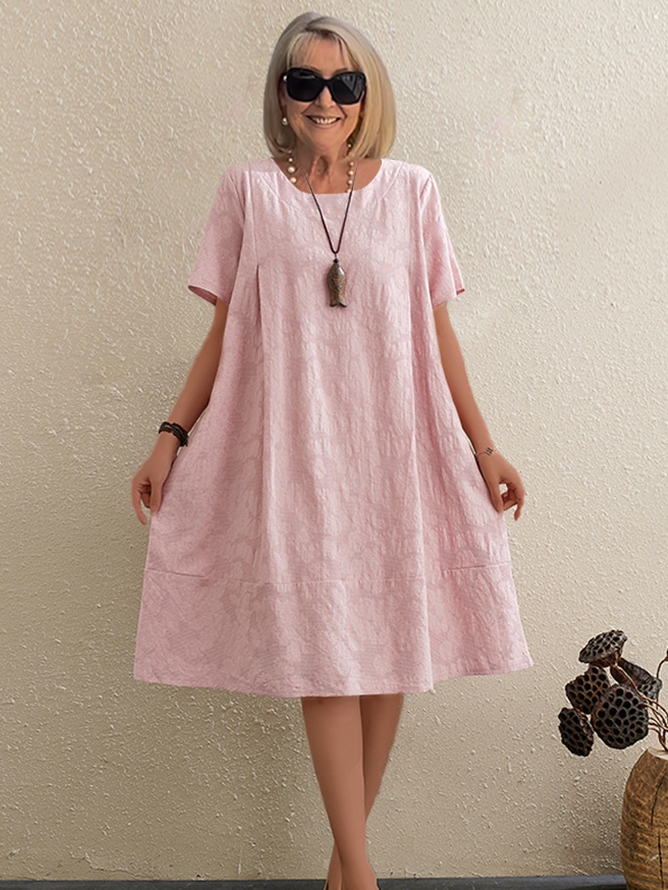 Large size jacquard literary loose and thin medium and long short-sleeved dress