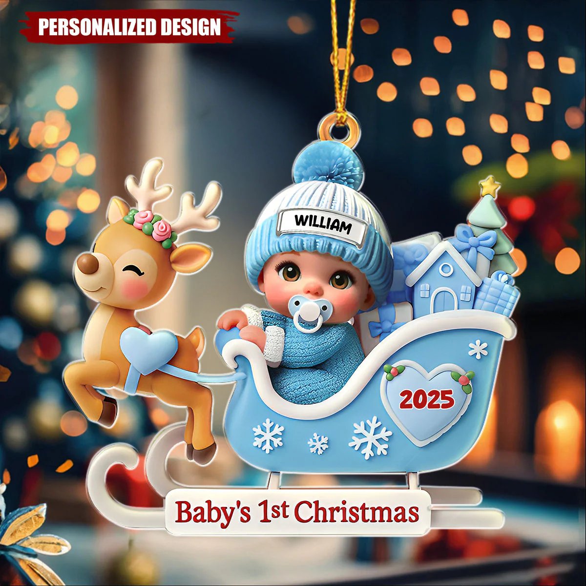 Baby Santa In Sleigh First Christmas - Personalized Custom Shaped Acrylic Ornament