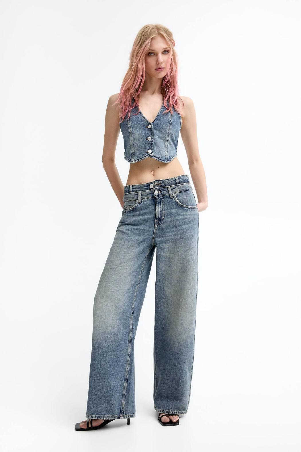 Baggy | Women Baggy Jeans With Double Waist Medium Blue