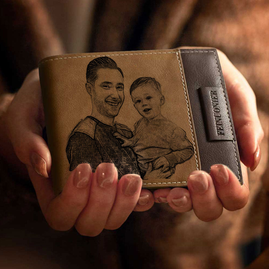Custom Photo Engraved Short Wallet RFID Blocking Wallet Gifts For Dad