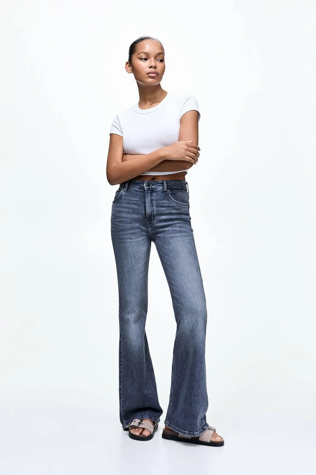 Flared | Women Flared High-Rise Skinny Jeans Grey