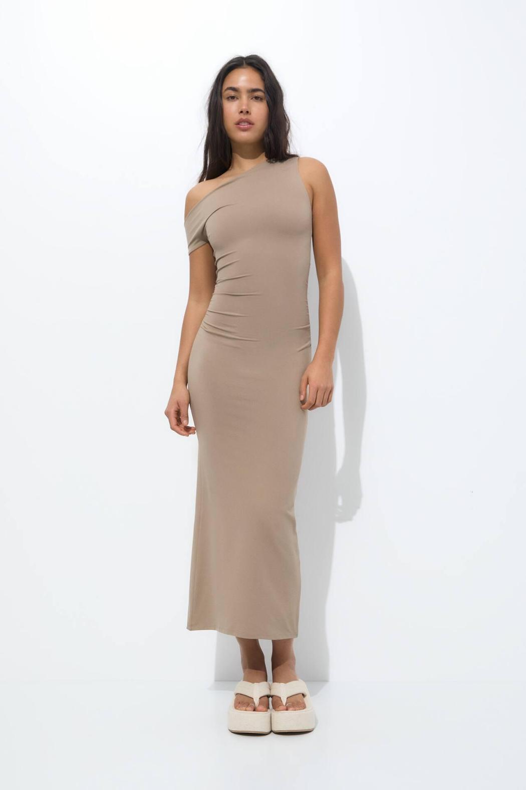Long | Women Long Dress With An Asymmetric Neckline Stone