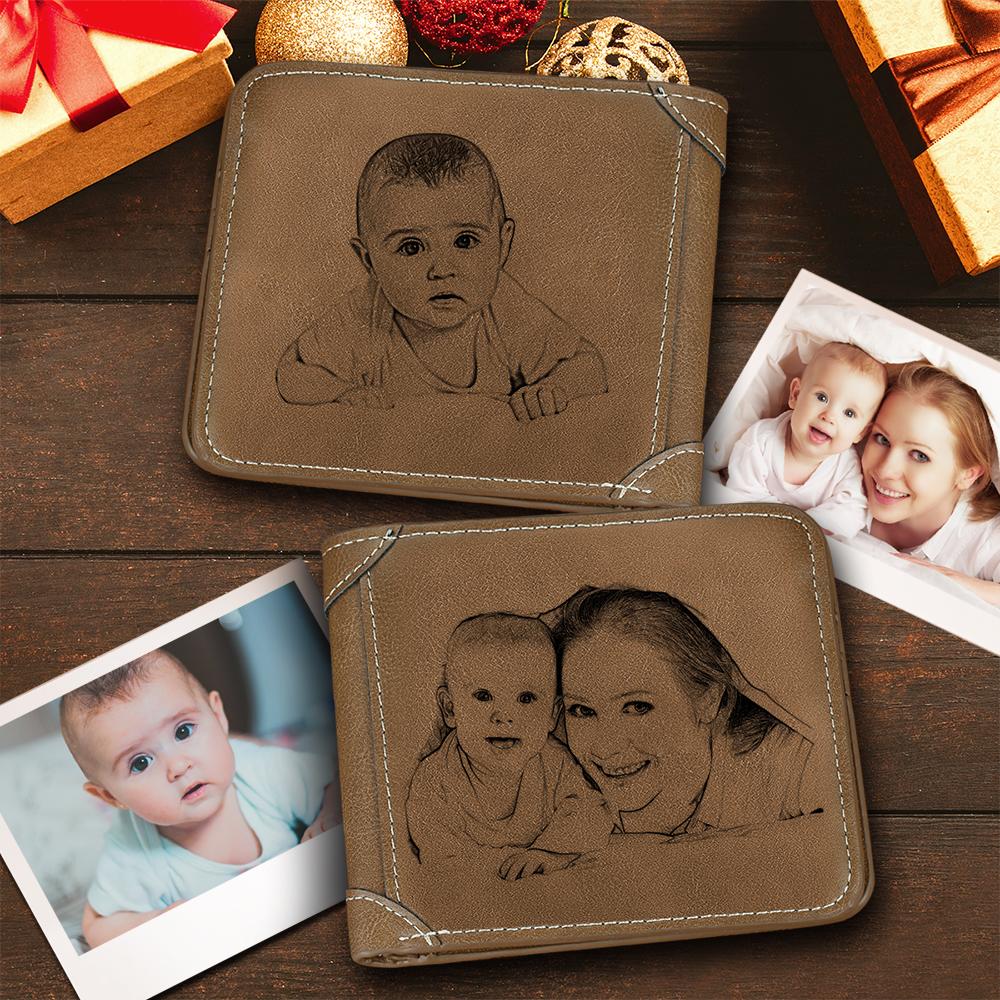 Custom Double-Sided Photo Engraved Wallet Brown Leather