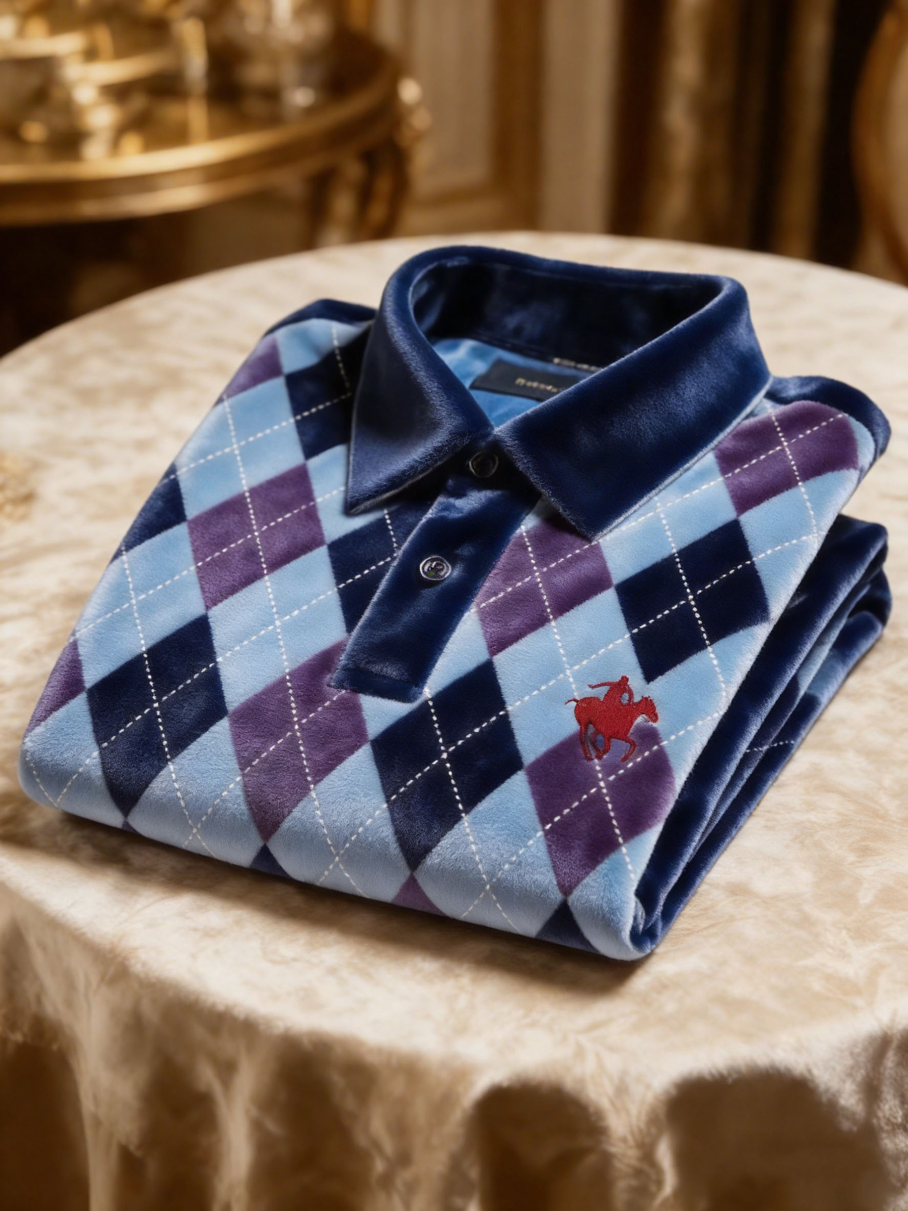 Men's Velvet Business Logo Print Long Sleeve Polo Shirt-0109