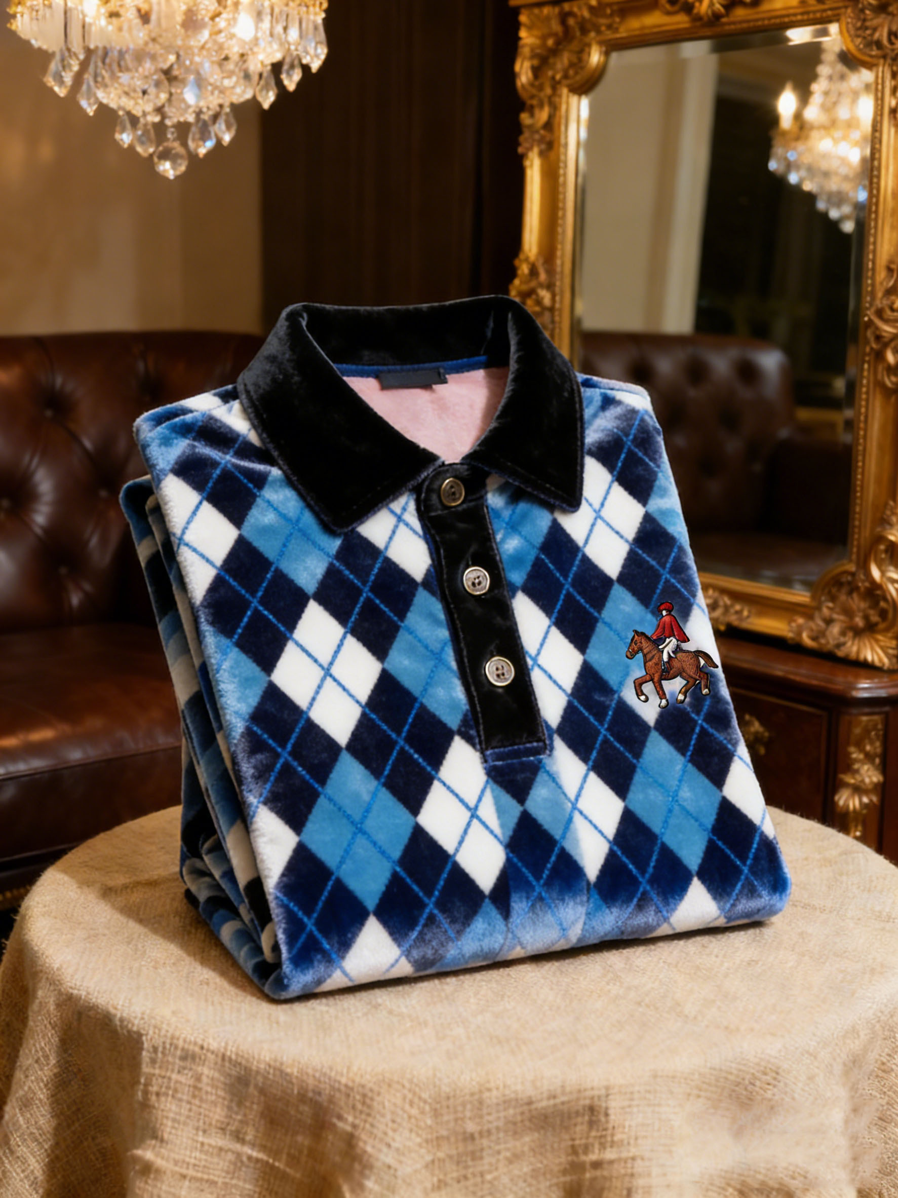 Men's Velvet Business Logo Print Long Sleeve Polo Shirt-0109