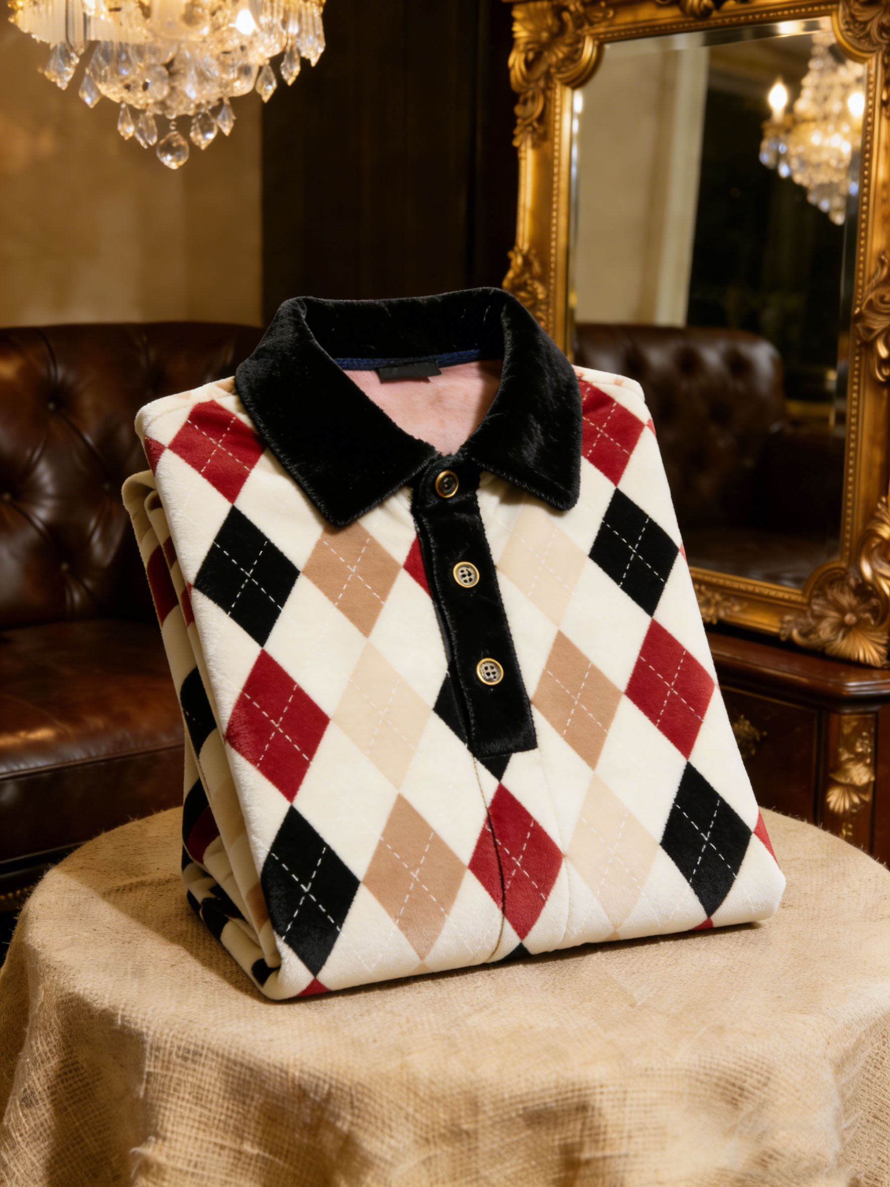 Men's Velvet Business Logo Print Long Sleeve Polo Shirt-0109