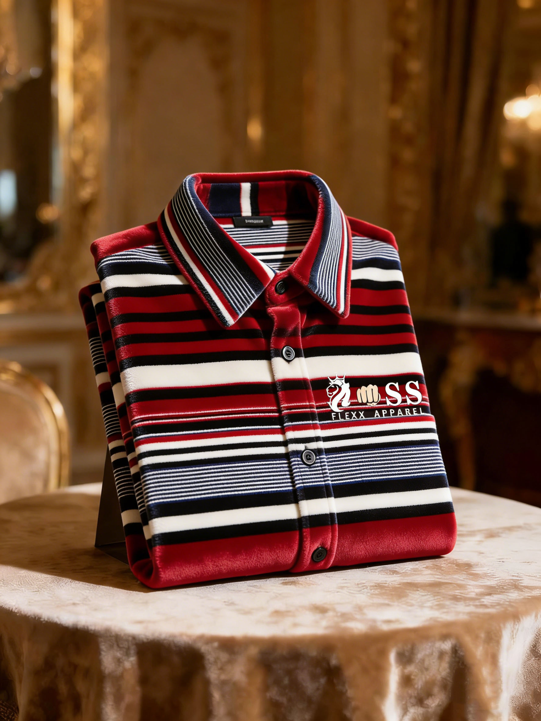 Men's Velvet Business Logo Print Long Sleeve Polo Shirt-0109