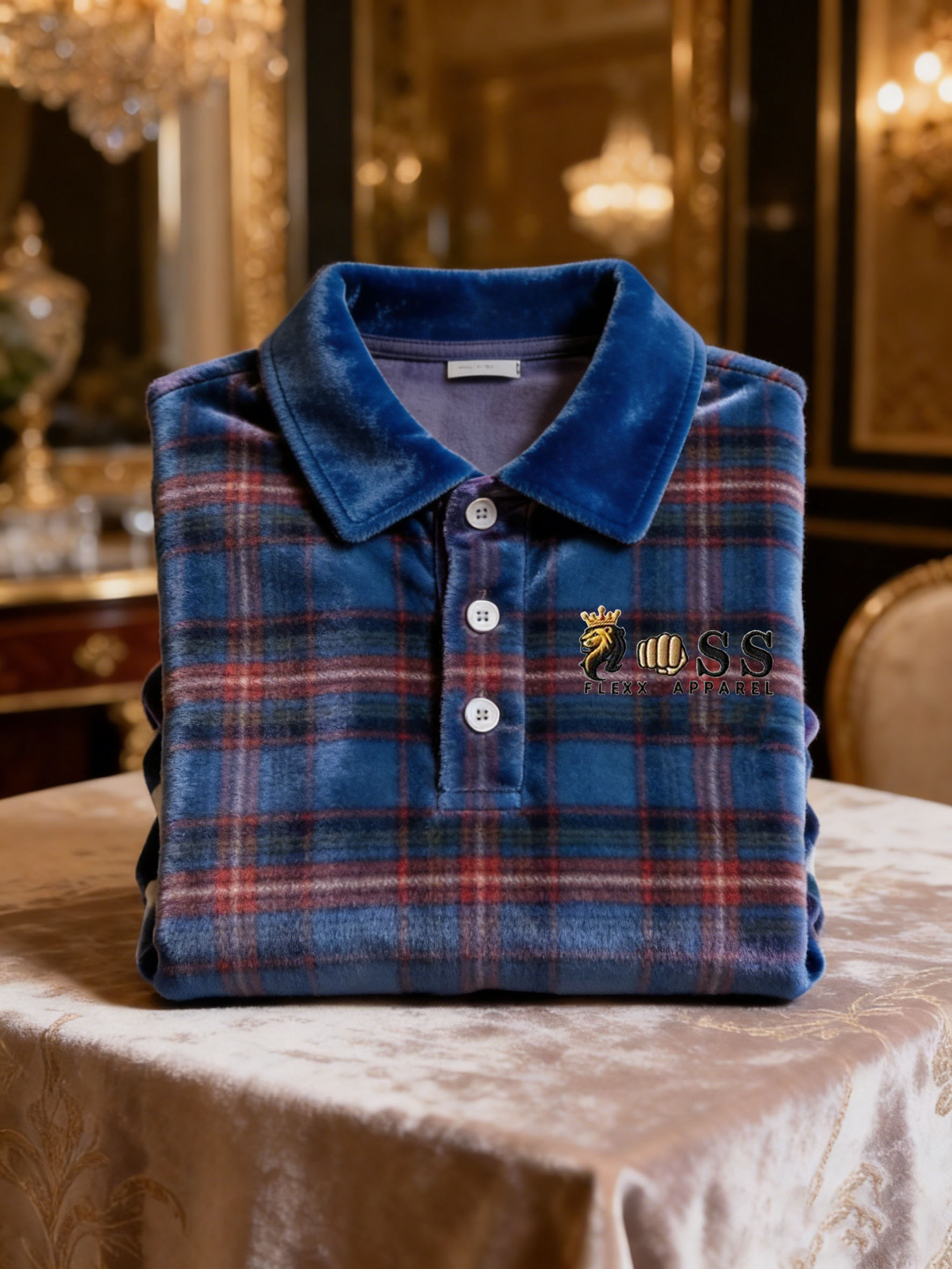 Men's Velvet Business Logo Print Long Sleeve Polo Shirt-0109