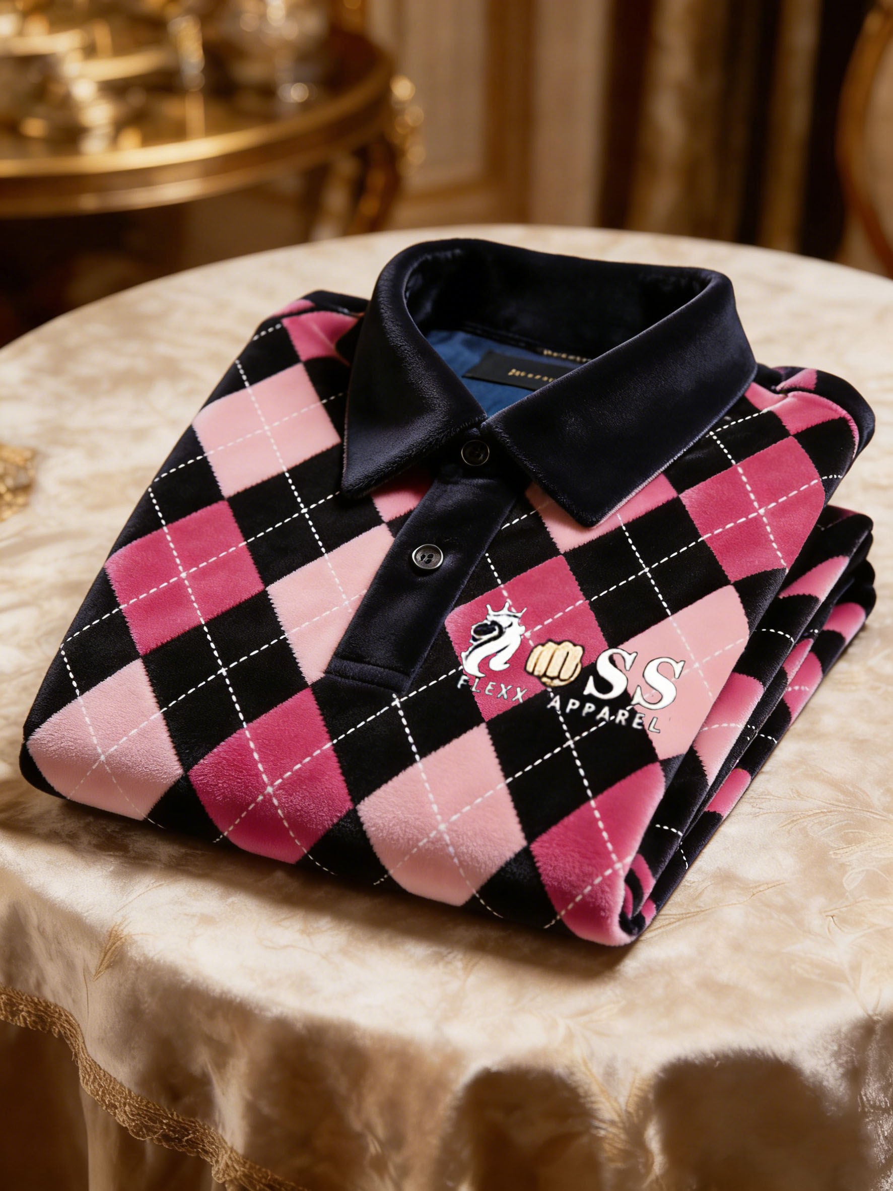 Men's Velvet Business Logo Print Long Sleeve Polo Shirt-0109