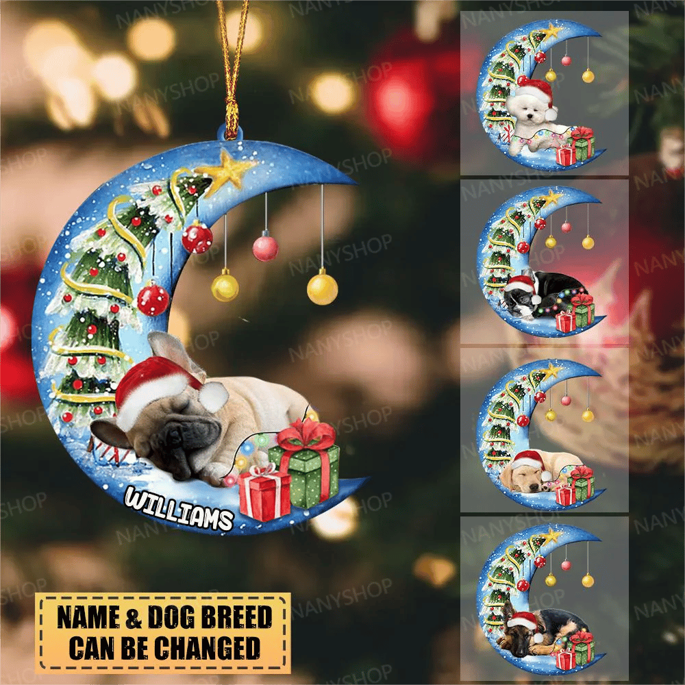 Personalized Dog Moon back Christmas-Two Sided Ornament