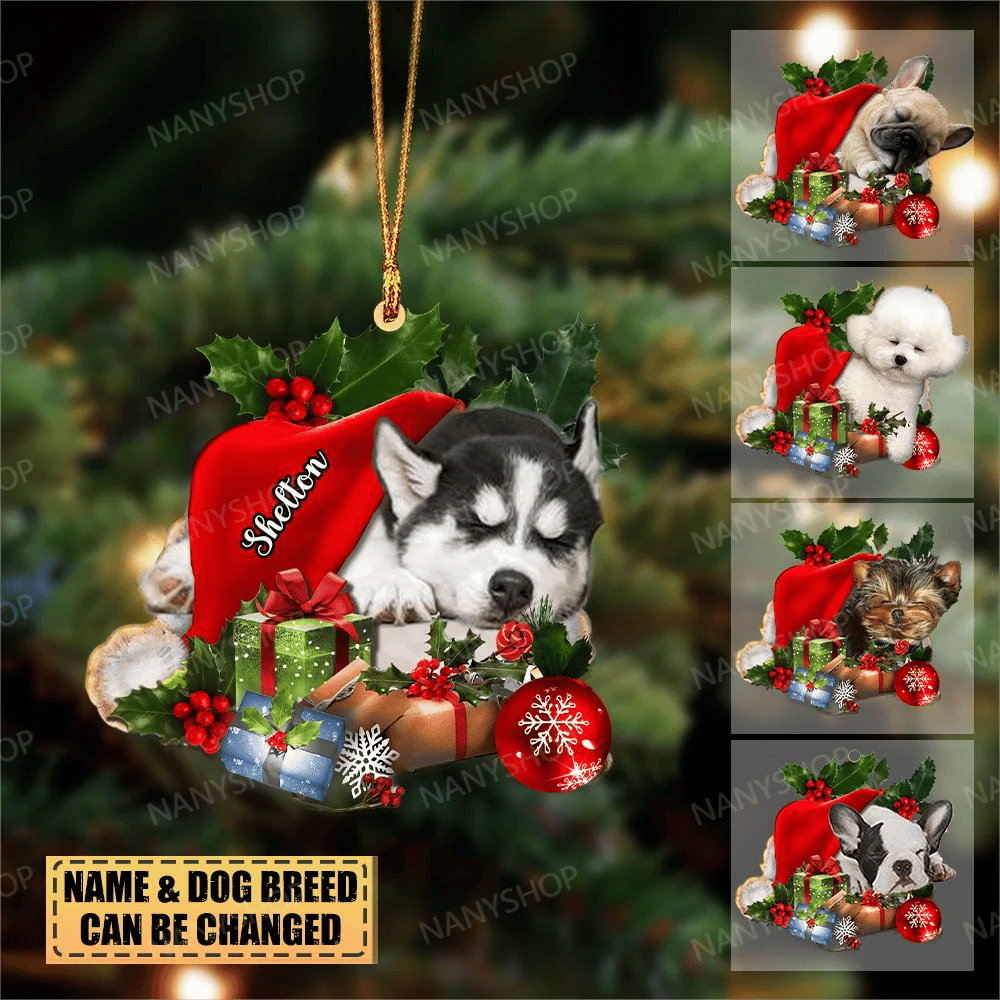 Personalized Dog Sleeping In Hat-Two Sided Ornament