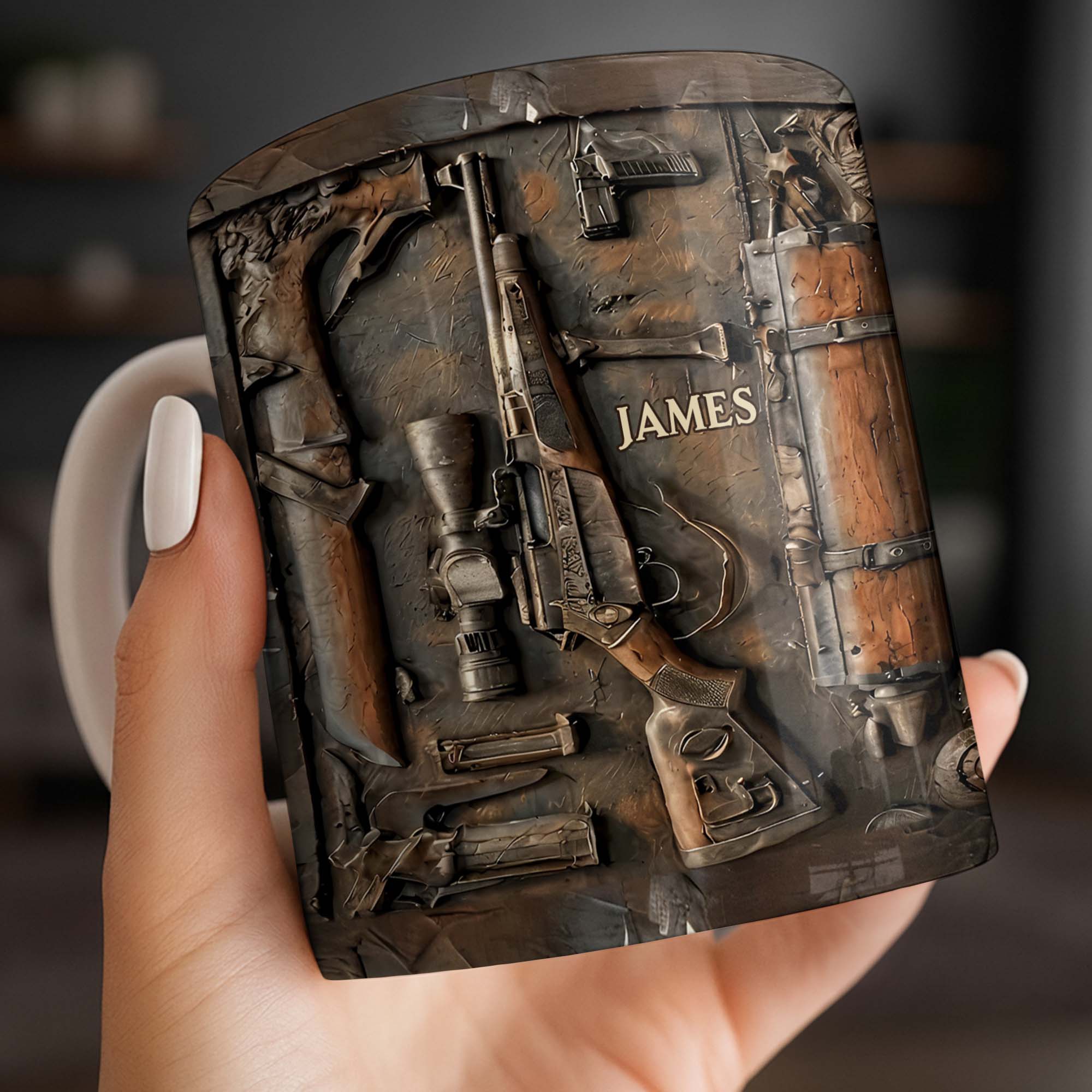 Message: Personalized Hunting Enthusiast Coffee Mug Featuring Iconic Hunting GearYou may also like