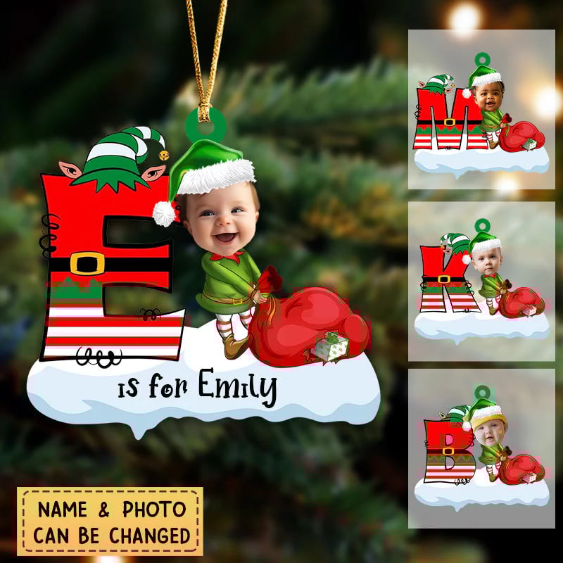 Personalized Monogram Alphabet Kid Photo Elf Christmas Ornament