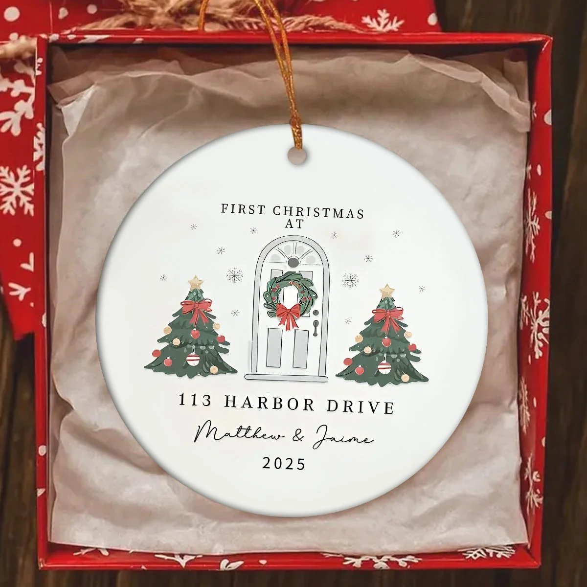 Our Personalized New Home Ornament is versatile and easy to showcase. Whether adorning a gift or adding a touch of coziness to any room, it's the perfect accent piece for spreading warmth and holiday cheer. A must-have for those who cherish the magic of home.