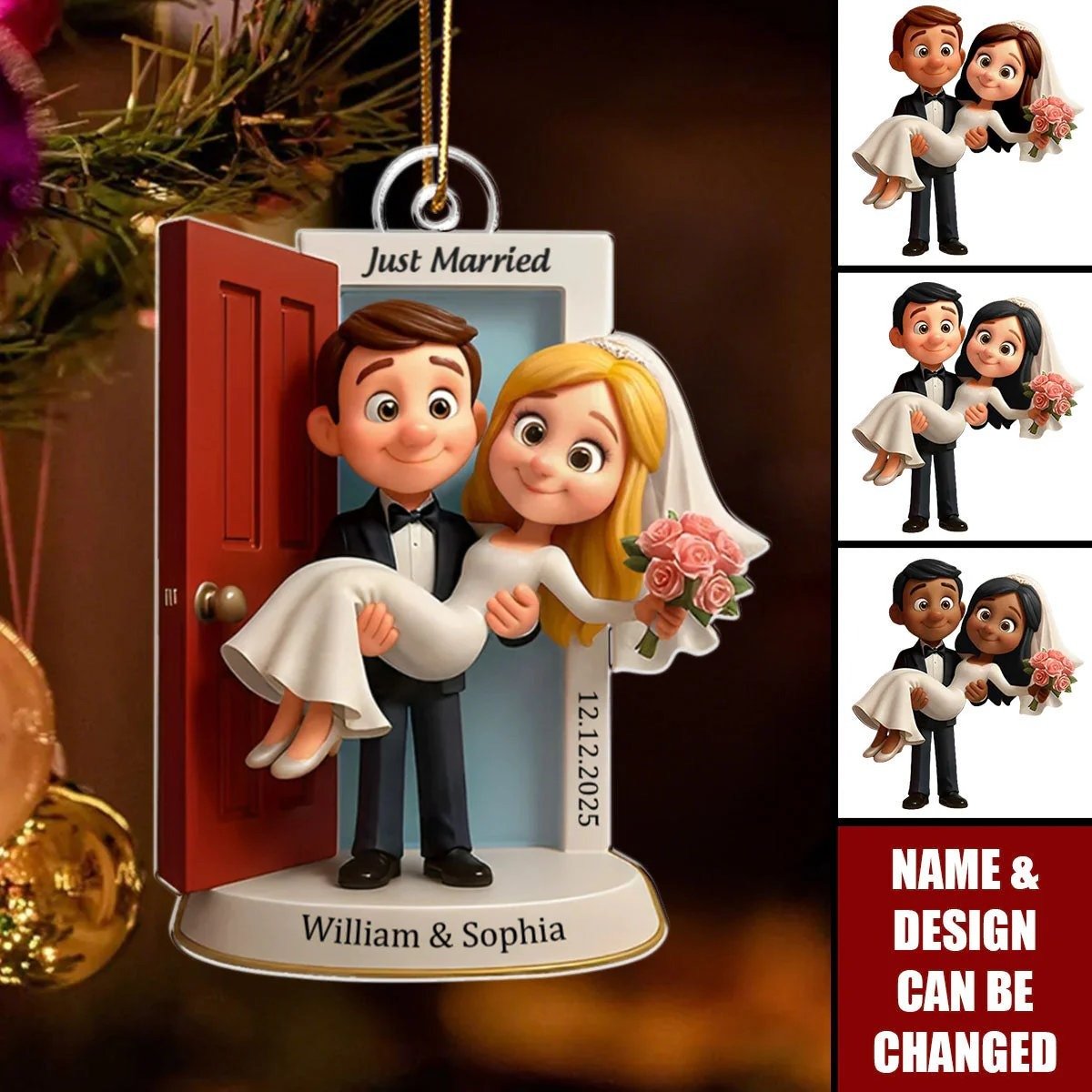 Personalized Our First Car Married Ornament - Custom Wedding Couple Threshold