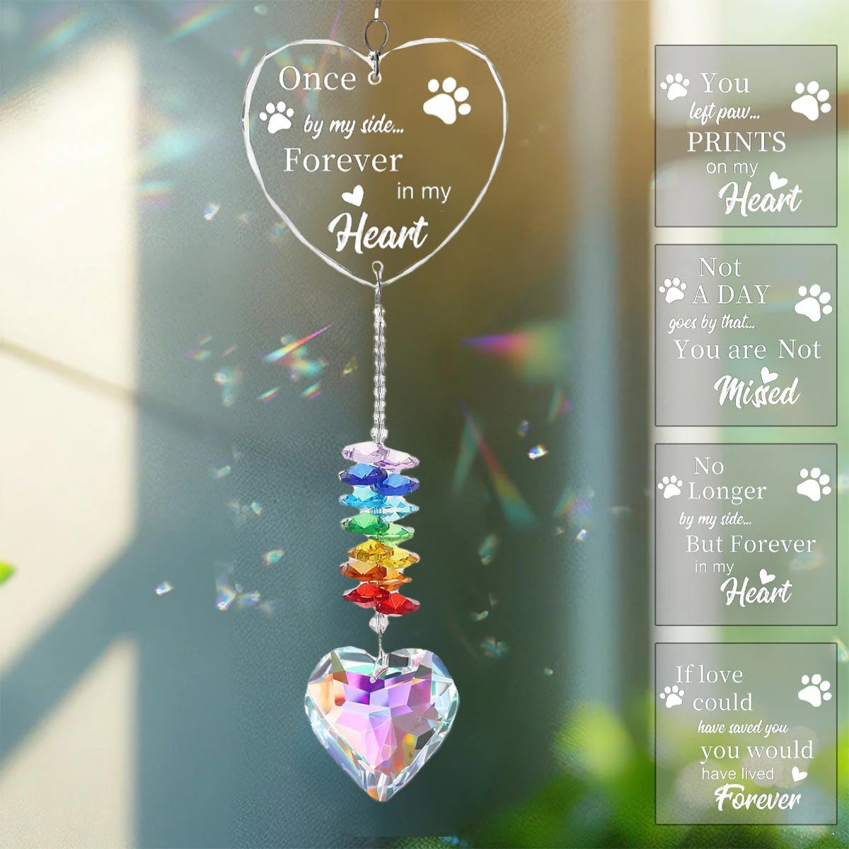 Unique and dazzling - Our hanging suncatchers are exquisitely designed to enhance any space with their captivating beauty. When the sunlight shines through, it creates stunning reflections and vibrant colors, casting a mesmerizing ambiance. Perfect as a thoughtful memorial gift or for adding enchantment to any room.