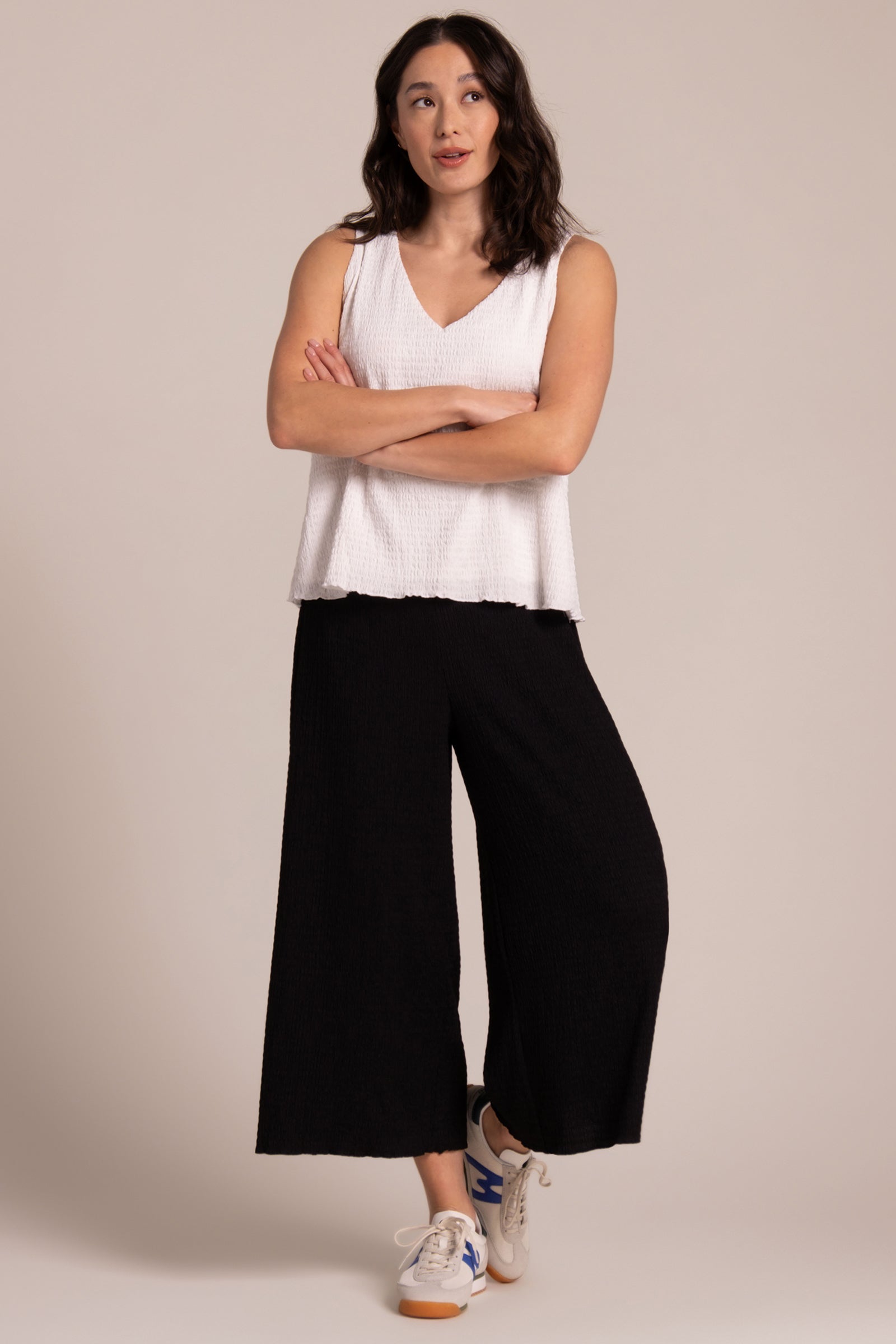 Popcorn Waffle Wide Capri | Black