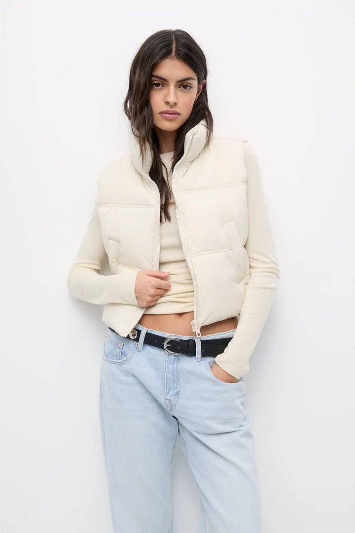 Puffer Jackets | Women Short Puffer Vest Ecru