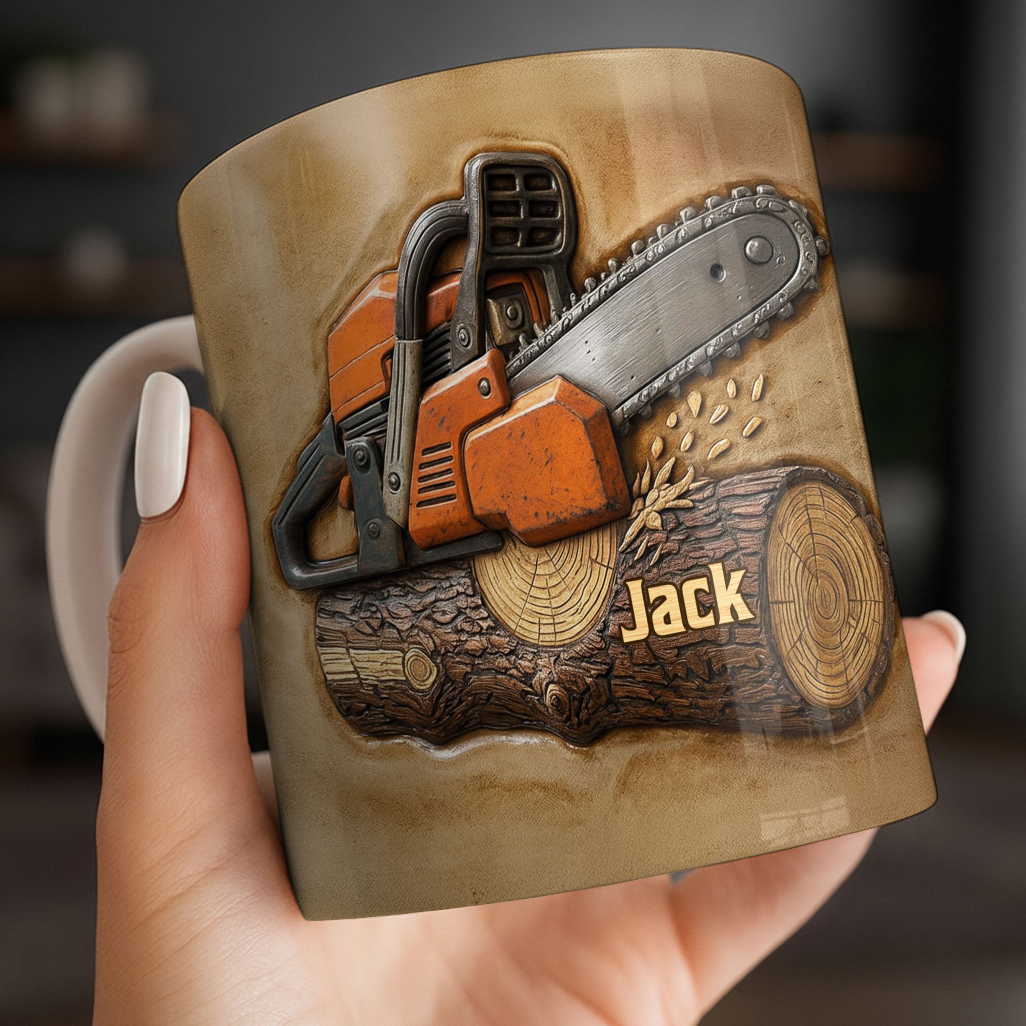 Message: Perfect for the hardworking lumberjack in your life, featuring a rugged chainsaw and wood design.You may also like