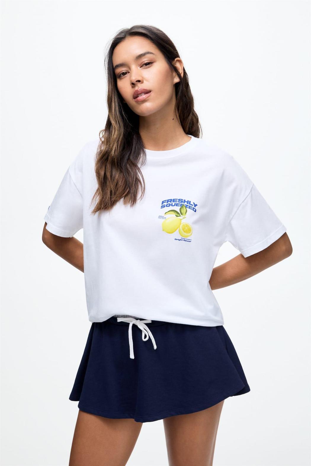 Short Sleeves | Women Short Sleeve Lemon Print T-Shirt White