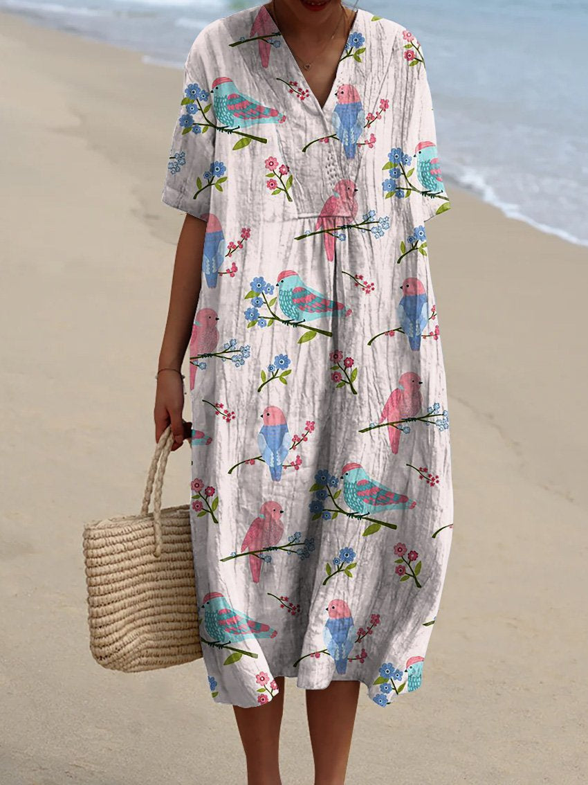 Spring Lovebirds Repeat Pattern Printed Women's Flowy Dress