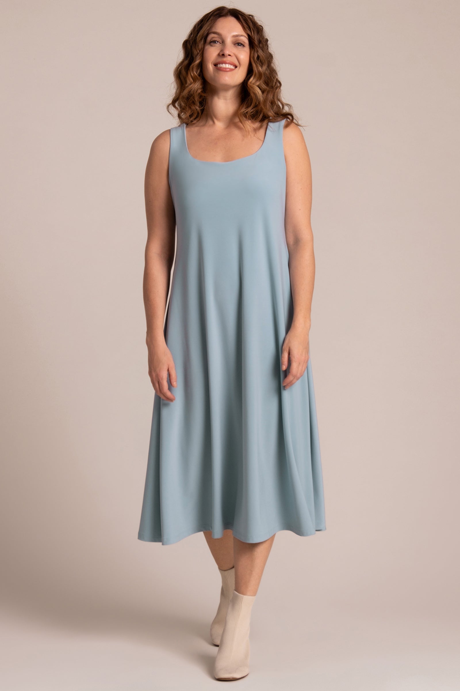 Square Neck Fit and Flare Dress | Stone Blue
