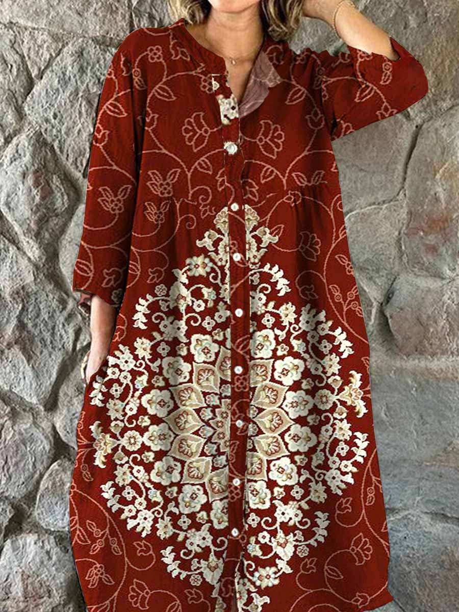Women's Bohemian Ethnic Geometric Print Cotton And Linen Dress
