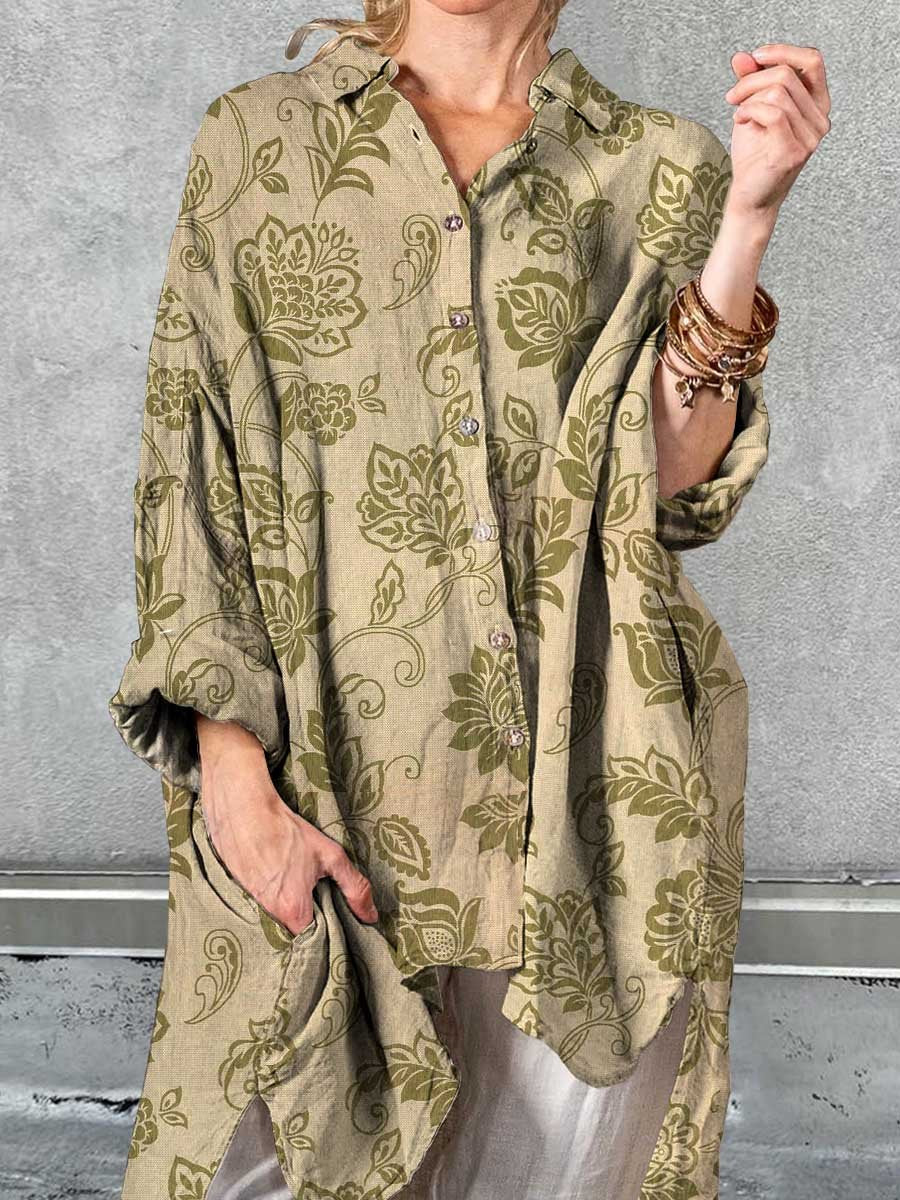 Women's Elegant Simple Floral Pattern Cotton Shirt