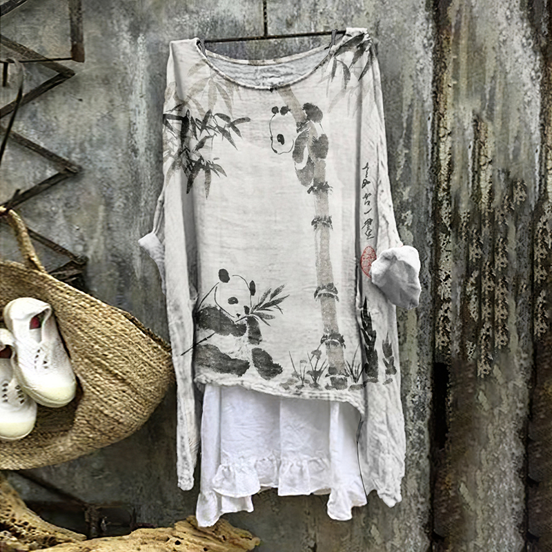 Women's Vintage Panda And Bamboo Cozy Linen Blend Tunic